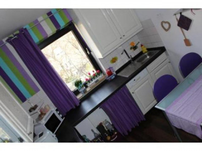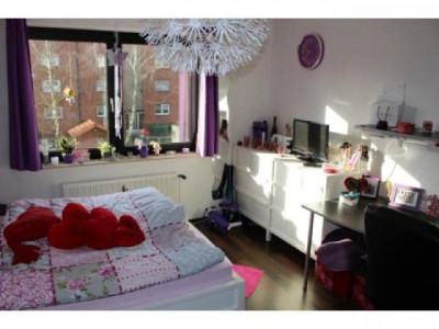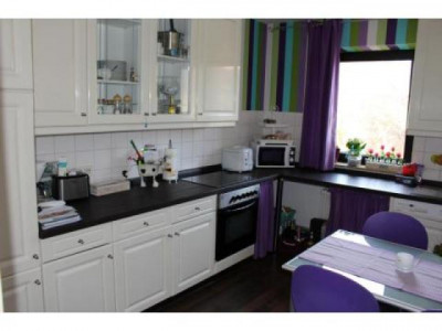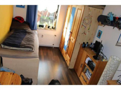 Nach dem Betreten der Wohnung gelangen Sie in den Flur, von dem alle Räume der Wohnung abgehen.Zur Linken befinden sich die beiden mit Laminat ausgelegten Schlafräume, die ausreichend Platz für Ihre Möbel bieten. In dem Schlafzimmer lassen sich bequem ein großes Bett, Nachtische, großer Kleiderschrank und Kommode stellen.Rechts neben dem Schlafzimmer befindet sich Kinderzimmer. Dieses ist mit hellem Laminat ausgelegt und bietet optimale Stellfläche für Kinderbett, Kleiderschrank und Kommoden.Zur Rechten des Flures gelangen Sie zuerst in das geflieste Badezimmer. Das Badezimmer ist für Sie mit einer Badewanne ausgestattet und lässt das Flair der 80er Jahre erkennen und fühlen.Weiter rechts entlang des Flures betreten Sie dann Ihre neue Küche. Mit einem dunkelbraunen Laminat ausgelegt und für Sie sogar mit einer Einbauküche ausgestattet lädt sie zum sofortigen Kochen nach dem Einzug ein.Gerade zu des Flures gelangen Sie in das geräumige Wohnzimmer. Hier finden Ihre Wohnzimmer Möbel genauso Platz, wie Ihr Esstisch oder Ihre Essecke. Aufgrund der optimalen Größe werden Ihrer Einrichtungsphantasie keine Grenzen gesetzt. Das besondere Highlight sind die zwei Balkone: einmal Ostausrichtung und einmal Westausrichtung. So können Sie ein morgendliches Frühstück im Sonnengeflecht oder den abendlichen Sonnenuntergang genießen.Abgerundet wird diese Wohnung durch den Abstellraum in der Wohnung, den separaten Kellerraum und die eigene Garage.