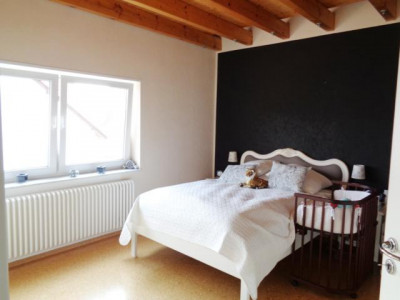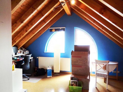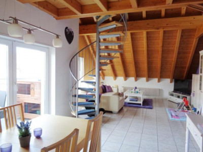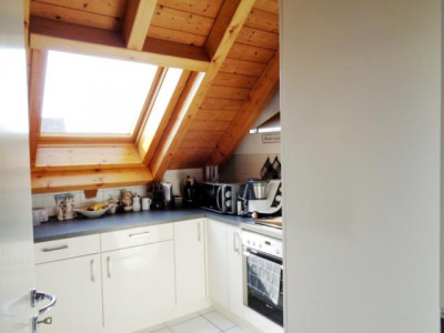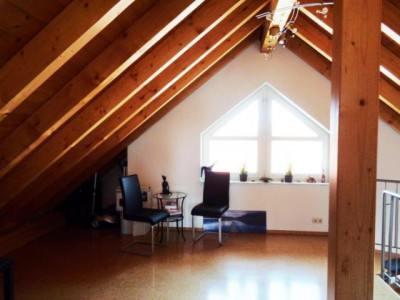 Sehr helle, gepflegte und individuelle Maisonettewohnung mit + geräumigem Wohn-/Eßzimmer (mit Ausgang zum Sonnenbalkon), + 3 weiteren, gut geschnittenen Zimmern, + zusätzlicher Galerie (z. B. nutzbar als Büro), + Küche (Übernahme einer Einbauküche möglich, Preis:VHS), + schönem Tageslichtbad, + Gäste-WC und+ Sonnenbalkon (Westausrichtung),in einem schön gelegenen und neuwertigen Zweifamilienhaus.1. ObergeschoßWohn-/Eßzimmer mit Ausgang zum Balkon, Küche, Flur, Tageslichtbad, Schlafzimmer 1, Schlafzimmer 2 und Gäste-WCDachgeschoßGalerie und ein weiteres Zimmer.Ein Kellerraum und ein PKW-Stellplatz gehören zur Wohnung. Die Kaution beträgt 2 Monatsmieten.Eine ganz besondere Wohnung.Überzeugen Sie sich bei einer Innenbesichtigung.Qualität der Ausstattung: Gehoben