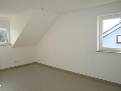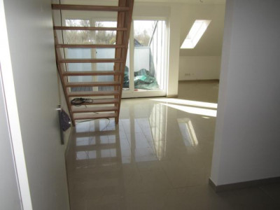 Die lichtdurchflutete Wohnung liegt im Dachgeschoss eines nach KfW 70 Richtlinien modernen, neu errichteten Zweifamilienhauses. Da das Haus am Ende einer Sackgasse liegt, ist Ruhe garantiert. Die Südwest-Lage und die vielen Fenster machen die Räume hell und den Balkon zu einer Sonnenoase am Nachmittag - den Sonnenuntergang können Sie am Feierabend ebenfalls genießen. Herzstück der Wohnung ist der offene Küchen-/Essbereich und der angrenzende, großzügige Wohnbereich. Die Wohnung zeichnet sich zudem durch das große Fensterbad aus, welches über eine Badewanne, Dusche, WC und die Anschlüsse für Trockner und Waschmachine verfügt. Für Gäste ist ein weiteres, sparates Gäste-WC vorhanden. Auf gleicher Ebene liegt das Schlafzimmer. Im Spitzbodenbereich befindet sich das Studio. Wohnzimmer, Schlafzimmer und Studio sind mit TV-Anschlüssen sowie Internet-Anschlüssen ausgestattet. Ein Internet-Anschluss befindet sich ebenfalls im Badezimmer. Durch die Video-Türstation können Sie sehen, wer bei Ihnen klingelt. Die Fenster verfügen über elektrische Rollladen. Alle Räume verfügen über digitale Raumthermostate.