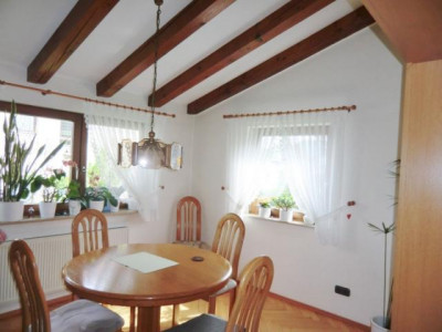 In schöner, zentraler Lage von Eningen können wir ein hübsches Einfamilienhaus mit großem Garten anbieten. Das Haus wurde von seinen jetzigen Eigentümern 1989 kernsaniert. Eine moderne Pelletheizung mit Solar für Warmwasser wurde 2001 eingebaut, ebenso das Dach isoliert und neu gedecktIm Erdgeschoß befinden sich die Küche, das Esszimmer geöffnet zum großzügigen, hellen Wohnzimmer. Von hier aus gelangt man auf Südterrasse und in den schön angelegten Garten.In der darüberliegenden Ebene sind noch 4 Schlafzimmer, ein Tagelslichtbadezimmer und ein WC untergebracht.Das Untergeschoß verfügt über einen Werkraum, den Vorratskeller und einen Heizraum.Die 2-Zimmer Einliegerwohnung mit Bad, Küchenzeile und separatem Eingang bietet 45 qm Wohnfläche.Lassen Sie sich doch bei einer Besichtigung von den Vorzügen dieser Immobilie überzeugen..