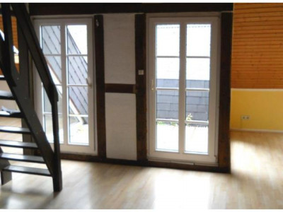 Im Haus befinden sich eine Zahnarztpraxis sowie zwei Wohnungen, von denen die Dachgeschosswohnung zur Vermietung steht.Die Wohnfläche beträgt ca. 110 m² bei folgender Aufteilung:Eingangsdiele, Gäste-WC, Wohn-Essraum mit Zugang zur sonnigen Dachterrasse, Küche, Schlafzimmer mit dahinter liegendem, kleinem Ankleideraum, ein weiteres Schlafzimmer, Bad/Dusche/WC. Über eine Holztreppe im Wohnbereich gelangt man in ein Studio.