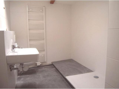Die Wohnung betreten Sie über eine Eingangsdiele von der aus Sie fast alle Räume der Wohnung erreichen können. Das helle Wohnzimmer ist hat eine Größe von fast 30 m². Von hier aus erreichen Sie einerseits die sehr schöne und ruhige Westterrasse sowie die entzückende Küche mit direktem Blick auf die Erft und die Werther Straße.Das Schlafzimmer hat trotz der üblichen Schrägen eines Dachgeschosses genügend Stellfläche für einen großen Kleiderschrank.Die Wohnung verfügt über ein sehr schönes Tageslicht-Duschbad mit Waschbecken und WC. Außerdem gibt es ein separates Gäste-WC.