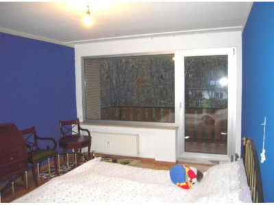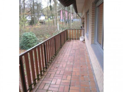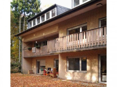Die Wohnung befindet sich im I. Obergeschoss eines fünf Parteien Hauses welches auf einem 2.572 m² großen, parkähnlichen Grundstück steht.Das Wohnzimmer ist ca. 55 m² groß und mit Parkett ausgelegt. Es besteht die Möglichkeit diesen Raum zu teilen (1/3 zu 2/3), da früher dort mal eine Wand stand, die der jetzige Eigentümer entfernt hat. Vom Wohnzimmer aus kommt man auf den ersten Balkon, der über die gesamt Länge des Wohnzimmers geht.An das sehr geräumige mit Parkettboden ausgestattet Schlafzimmer grenzt der zweite Balkon. Von beiden Balkonen aus hat man einen herrlichen Blick in die Natur.Im Flur befindet sich ein Einbauschrank der als Garderobe genutzt werden kann. Auch hier ist Parkettboden verlegt.Die Küche ist mit einer Einbauküche ausgestattet, die kostenfrei übernommen werden kann. Sie hat Fliesenboden und Fliesenspiegel an den Längswänden.Das Tageslichtbad ist deckenhoch gefliest, mit Duschkabine, Badewanne, Waschbecken und WC. Im Boden befindet sich ein Abfluss.Zur Wohnung gehören eine Garage sowie ein Kellerraum. Außerdem gibt es eine Gemeinschaftswaschküche.
