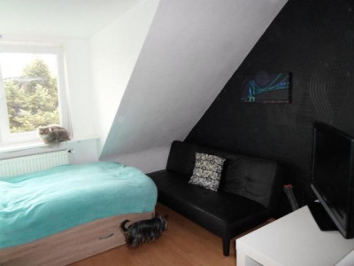 Das hier zur Rede stehende Objekt befindet sich im 2. Obergeschoss des Hauses und bietet mit der Gesamtwohnfläche von ca. 69m² eine schön geschnittene Dachgeschosswohnung, die aber nur wenige Schrägen aufweist.