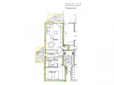 Die gut geschnittene Wohnung befindet sich in einem Haus mit nur 7 Wohneinheiten in zweiter Reihe und damit in sehr ruhiger Lage am Rande einer Grünanlage/Parkanlage. Die ca. 57 qm große Wohnung besteht aus folgenden Räumen:Wohnzimmer ca. 26 qm + ca. 6 qm Terrasse Schlafzimmer ca. 14 qmKüche ca. 7 qm + ca. 6 qm TerrasseBad ca. 5 qmAbstellraum ca.1 qmFlur ca. 4 qmZur Wohnung gehört ein überdachter PKW Stellplatz und ein Kellerraum mit ca. 9 qm.Das Haus hat als Gemeinschaftsraum einen Fahrradkeller und einen Wasch/Trockenraum.Im Jahr 2012 wurde die Heizanlage durch ein modernes erdgasbetriebenes Klein-Blockkraftwerk ersetzt. Der Energieausweis, welcher noch bis 2018 gilt, wurde 2008 erstellt und berücksichtigt nicht die umfangreiche Umrüstung und Erneuerung der Heizanlage!