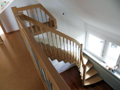 Die gemütliche 3,5 Zimmer Maisonette Wohnung mit ca. 103 m² Wfl. befindet sich im Dachgeschoss eines älteren, gepflegten Zweifamilienhauses in Freiburg-Waltershofen. Sie verfügt über einen schönen Dielen- und Wohnbereich mit Parkettboden, ein Schlafzimmer und eine große separate Wohnküche (ohne EBK) mit Zugang zum Südost Balkon.Das Tageslichtbadezimmer ist mit einer Badewanne, Dusche, Waschbecken und WC ausgestattet.Vom Wohnzimmer aus gelangen Sie über eine Holztreppe in das obere Dachgeschoss mit offener Galerie und zusätzlichem Zimmer. Die Holzbalken und der Korkboden bringen viel Charme in die Räume. Zur Wohnung gehören ein Kellerabteil und ein Kfz-Stellplatz im Feien. Das Haus verfügt zudem über einen Wasch-/Trockenraum mit Anschluss für die Waschmaschine.Energieausweis ist in Bearbeitung.