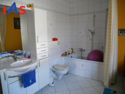 Diese hochwertige Immobilie in Ziegelbauweise wurde im Bungalowstil errichtet. Das Dachgeschoss und der Keller sind ausgebaut und können jeweils als Wohnraum genutzt werden. Das großzügig gestaltete Dachgeschoss kann als Studio genutzt werden und ist ideal geeignet für heranwachsende Teenager, da auch noch ein zusätzliches Tageslichtbad mit Dusche vorhanden ist. Von der geräumigen Diele aus erreichen Sie sämtliche Zimmer. Im Erdgeschoss befindet sich das helle und große Wohn-/Esszimmer mit offener Küche, die mit einer hochwertigen Einbauküche ausgestattet ist. Vom Wohnzimmer aus ist der Zugang zur überdachten Terrasse und Garten mit Gartenhaus und überdachtem Swimmingpool. Der Garten wurde liebevoll von der jetzigen Eigentümerin angelegt und gestaltet. Im Erdgeschoss befindet sich auch noch ein Büro, ein Bad mit Badewanne und ein separates Zimmer mit Badewanne, WC und Bett. Im Kellergeschoss befindet sich noch ein Schlafzimmer und ein zusätzliches Badezimmer mit Dusche und WC. Außerdem gibt es noch drei weitere Kellerräume mit geräumiger 30 m² großer Werkstatt. Auf dem weitläufigen Grundstück sind noch 2 Doppelgaragen und Stellplätze für weitere Autos vorhanden. Der Hofbereich und die Einfahrt sind komplett gepflastert. Angrenzend an die Einfahrt hat man auf ca. 500 m² noch die Möglichkeit, ein weiteres Haus zu errichten. Folgende Modernisierungsmaßnahmen wurden durchgeführt:- 1993 Ausbau des Dachgeschosses- 1995 Erneuerung des Bades- 2005 Bau der zwei Doppelgaragen, neue Öl-Zentralheizung von Viessmann, Errichtung der Bäder im Erdgeschoss und im Keller- 2006 neue Kunststofffenster mit Rollläden- der Garten wurde komplett angelegt, der Swimmingpool überdacht mit Filter- und GegenstromanlageDiese hochwertige Immobilie wurde bis ins Detail geplant und lässt keine Wünsche offen