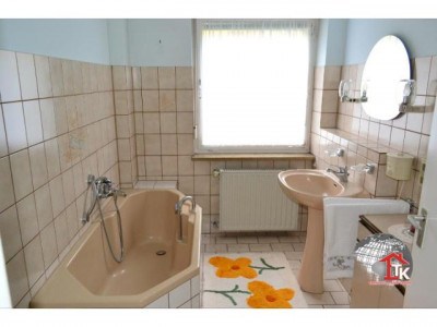 Zum Verkauf steht ein freistehendes und sehr gepflegtes 1-2 Familienhaus in ruhiger Lage von Scheinfeld. Das Haus wurde 1966 in Massivbauweise erstellt, ist voll unterkellert und eignet sich für eine größere Familie oder auch für zwei getrennte Wohneinheiten. Das 1.274m² große Grundstück ist schön angelegt und bietet Ihnen sehr viel Platz für Gestaltungsmöglichkeiten. Für das Grundstück gibt es eine zweite Zufahrt, daher könnte im Garten ein weiteres Haus erbaut werden. Eine Garage, ein Stellplatz sowie ein Gartenhaus/Werkstatt sind vorhanden.Die Gesamtwohnfläche von ca. 198m² verteilt sich auf EG und OG wie folgt:Erdgeschoss: Treppenhaus/Flur, großes Wohn- und Esszimmer mit Zugang zur Terrasse und zum Garten, Küche mit Einbauküche, Arbeitszimmer, Bad und ein WC, Abstellraum1. Obergeschoss: großes Wohn- und Esszimmer mit Zugang zum Balkon, Schlafzimmer, Gästezimmer, Küche, Bad, AbstellraumDachgeschoss: nicht ausgebautUntergeschoss: Waschküche, zwei große individuell nutzbare Räume, Duschbereich, Heizungsraum, Tankraum