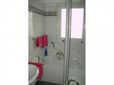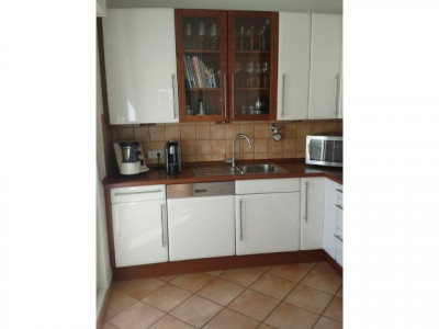 Verkauf einer komfortablen, großzügig aufgeteilten 2-Zimmer-Staffelgeschoss-Eigentumswohnung im 2. Obergeschoss inklusive PKW-Stellplatz.Wohnzimmer und Schlafzimmer mit umlaufender Terrasse, Küche mit Loggia, Diele, Bad mit Dusche, Badewanne und WC, Gäste-WC, Abstellraum und großem Kellerraum.Eine Sauna befindet sich im Kellergeschoss.Im Garten befindet sich das beheizte Außenschwimmbad.Das Haus befindet sich in einem sehr guten baulichen und gepflegten Zustand und wurde von den Eigentümern stetig modernisiert.Die Wohnung selbst wurde im August 2010 wesentlich renoviert und modernisiert und im Sommer 2014 erneut gestrichen.Kunststofffenster, Iso-Verglasung, Rollläden, geöltes Parkett im Wohnzimmer und Schlafzimmer, Granitboden in Diele und Bad, Fliesen in der Küche und im Gäste-WC. Hochwertige Glastüren in Küche und Wohnzimmer.Zur Küche gehört eine hochwertige Einbauküche mit Spülmaschine.Ein großer, abgeschlossener Kellerraum und eine große Waschküche/Trockenraum befinden sich im Kellergeschoss. Dort befinden sich 2 Plätze mit separaten Steckdosen für Waschmaschine und Trockner. Der PKW-Stellplatz befindet sich direkt gegenüber dem Hauszugang.In der parkähnlich angelegten und gepflegten Gartenanlage befindet sich das beheizte Außenschwimmbad. Die Sauna befindet sich im Kellergeschoss. Die SAT-Anlage wurde Ende 2014 erneuert und ist auf dem neusten Stand. Die Fassade des Hauses ist wärmegedämmt. Das Haus wurde 2013 mit einem neuen Anstrich versehen. Es gibt keinen Renovierungsstau.