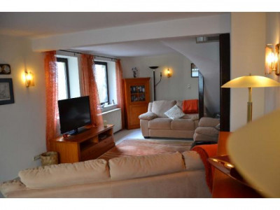 Die hier angebotene, in Massivbauweise errichtete Immobilie mit ca. 108m² Wohnfläche zzgl. einem 50m² wohnlich ausgebautem Nebengebäude (direkt mit dem Haupthaus verbunden), befindet sich in einer verkehrsberuhigten Einbahnstraße, welche ein angenehmes und ruhiges Wohnen verspricht.Der Ursprungsbau entstand im Jahre 1903, was gut an dem großen Gewölbekeller zu erkennen ist. Eine Grundsanierung samt Haustechnik fand im Jahre 1985 und 1989 statt. Die Dachkonstruktion wurde erst im Jahr 2000 komplett erneuert.Nicht nur die Lage der Immobilie, sondern auch der Grundriss ist wunderbar durchdacht.So haben wir ein Haupthaus mit insgesamt fünf Wohnräumen, einer Küche, zwei Bädern und einem Gäste-WC und zusätzlich noch ein weiteres zughöriges Gebäude, welches aus einem Wohnzimmer, einem Schlafzimmer und einem Badezimmer besteht.Der Anbau eignet sich beispielsweise als Gästehaus, könnte allerdings auch gut für geschäftliche Zwecke genutzt werden. Über einen Innenhof sowie eine großzügige und helle Eingangsdiele sind beide Gebäudeteile miteinander verbunden. Ein Gäste-WC befindet sich direkt im Eingangsbereich. Zu Ihrer Rechten erreichen Sie dann das Hauptwohnhaus. Die Küche lädt durch ihre Größe nicht nur zu langen, ausgiebigen Kochabenden ein, sondern bietet auch genügend Platz für eine Essecke, um die ganze Familie zu versammeln.Gegenüber von der Küche befindet sich ein Wohnraum, der zur Zeit als gemütliches Esszimmer genutzt wird und mit einer eigenen Hausbar ausgestattet ist. Dieses Zimmer bietet sich jedoch auch als Wohnzimmer an.Im ersten Obergeschoss befinden sich zwei der insgesamt vier Schlafräume. Durch schöne, dunkle Holzverstrebungen wird das größere Zimmer nicht nur optisch in zwei separate Bereiche aufgeteilt, sie geben auch eine wohnliche Atmosphäre ab, in der man sich direkt wohl fühlt. Das Tageslicht Bad auf dieser Etage ist hell gefliest und weist neben einem Doppelwaschbecken und WC auch eine Dusche sowie ein Bidet auf.