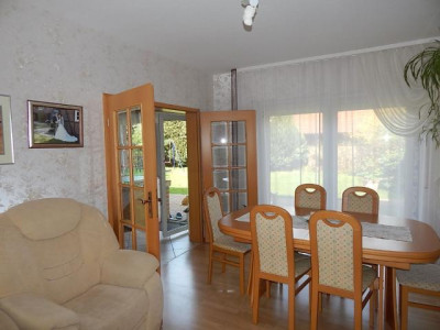 Das freistehende Einfamilienhaus ist im Jahr 1997 auf einem ca. 650 m² großen Grundstück errichtet worden. Die Wohnfläche erstreckt sich über 150 m² und verteilt sich auf insgesamt 6 Zimmer. Von der großen Diele aus führt eine offene Holztreppe ins OG. Im EG befindet sich das große Wohnzimmer mit Essbereich und direktem Zugang (durch eine große Glastür getrennt) zur Küche. Die zeitlose und gepflegte Einbauküche aus dem Jahr 1997 ist im Kaufpreis enthalten. Der geschlossene Kamin lädt zu gemütlichen Abenden ein. Des weiteren befindet sich im EG das Gäste-WC mit Pissour und ein großer Hauswirtschaftsraum mit Waschmaschinenanschluss und einer Dusche. Im OG befinden sich zwei Kinderzimmer, ein Schlafzimmer mit angrenzendem, tageslichthellen Ankleidezimmer welches auch als auch als Büro oder anderweitig genutzt werden kann. Das große Vollbad mit Eckbadewanne, Dusche und Doppelwaschbecken ist geräumig, sehr hell und mit Fußbodenheizung ausgestattet. Auch das EG ist (bis auf Gäste-WC und HWR) mit einer Fußbodenheizung ausgestattet. Störende Heizkörper sucht man vergeblich. Der Dachboden ist gedämmt. Die Fenster sind doppelt isolierverglast und aus Kunststoff in Holzoptik gefertigt. Der pflegeleicht angelegte Garten verfügt über einen Brunnen für die Wasserversorgung im Außenbereich. Die Doppelgarage mit angrenzender Werkstatt und weitere Abstellräume im Außenbereich sowie weitere Kfz-Stellplätze runden dieses attraktive Angebot ab. Wir freuen uns auf Ihre Anfrage - bitte Namen, Anschrift und Telefonnummer im Kontaktformular angeben und Sie erhalten umgehend weitere Informationen.