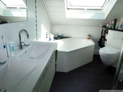 IDEAL für eine junge Familie: Das Einfamilienhaus (Mittelhaus einer Dreiergruppe) bietet auf einem Grundstücksanteil von 208 qm über 120 qm Wohnfläche auf 3 Ebenen. Es ist durchgängig modernisiert worden und präsentiert sich in bestem Zustand. Im Erdgeschoss liegt das 30 qm große Wohnzimmer mit Kamin und Balkon mit toller Aussicht, eine separate Küche, ein zeitgemäßes Gäste-WC und der Eingangsflur. Über die geflieste Massivbeton-Treppe erreichen Sie das Dachgeschoss mit 2 ca. 12 und 14 qm großen Schlafzimmern und einem sehr chicen, modernen Bad (Wanne + Dusche). Das Gartengeschoss bietet 2 Wohnräume z. Bsp. als Büro oder Kinderzimmer mit sich anschließender, großer Gartenterrasse. Keller-Raum und Gaszentral-Heizung sind im gleichen Geschoss. Vor dem Haus befindet sich ein neu angelegter PKW-Stellplatz.Vereinbaren Sie gleich einen Besichtigungstermin. Rufen Sie uns an.