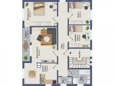 Das komplett renovierte, massiv erstellte Dreifamilienhaus befindet sich in Landsberg Ost, nur wenige Minuten von umfangreichen Einkaufsmöglichkeiten und der Auffahrt zur A 96 entfernt. Sowohl im Umfeld als auch in der Wohnung, welche sich über den kompletten ersten Stock erstreckt, fühlt man sich sofort heimisch. Vom gemeinschaftlichen Hausflur betreten Sie eine große Diele mit eigenem Fenster nach Westen. Hier können Sie sich eine schöne Leseecke oder einen kleinen Schreibtisch einrichten. Nach links gelangen Sie zum hellen, vor ca. 6 Jahren neu gestalteten Bad, zum Gäste-WC sowie zur Küche und dem angrenzenden Essbereich. Auf der Südseite erreichen Sie das geräumige Wohnzimmer, von welchem Sie Zugang zum Balkon und zum Essbereich haben. Die beiden Kinderzimmer und das über 20m² große Schlafzimmer befinden sich im rechten Bereich der Wohnung.