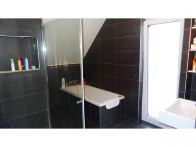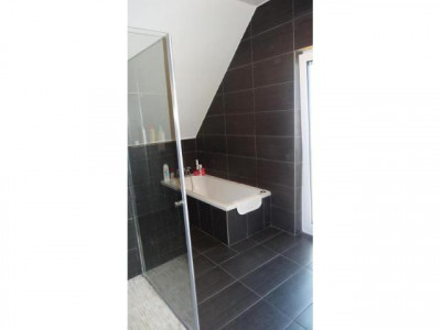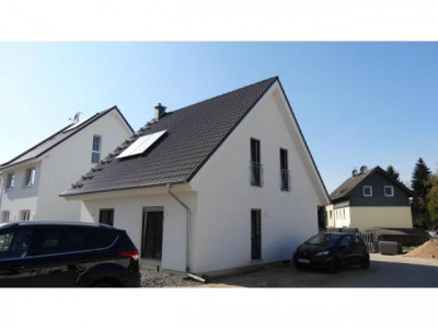 Ihr neues Haus wurde 2014 fast fertig gestellt und ist erst seit einigen Monaten von den Eigentümern bewohnt, die Baugarantie (30 Jahre) geht also auf Sie über. Die Bauherren haben mit der Ausstattung guten Geschmack bewiesen, im EG wurden die Fußböden und das Gäste WC mit anthrazit-farbenen Fliesen ausgestattet, im OG liegt ein hochwertiges und pflegeleichtes Laminat. Das große Wohn- Esszimmer, hat bodentiefe Fenster und Türen und einen Kaminofen der die Gemütlichkeit unterstreicht. Das Gäste WC mit Fenster und den großer Hauswirtschaftraum erreichen Sie von der großzügigen Diele aus.Im Hauswirtschaftsraum sind u.a. die Gas Zentral Heizung und der Anschluss für Ihre Waschmaschine installiert. Das Haus ist nicht unterkellert. Für wohlige und konstante Wärme im EG und im OG sorgt eine FUSSBODENHEIZUNG,jedes Zimmer ist einzeln zu temperieren. Durch eine moderne Frischluft Aufbereitung haben Sie immer ein angenehmes Raumklima, auch im Sommer. Im OG liegen zwei unterschiedlich große Schlafzimmer, eines mit einem BEGEHBAREN KLEIDERSCHRANK, und ein KINDER oder ARBEITSZIMMER. Das Highlight des Hauses ist zweifelsfrei das ebenfalls mit anthrazit farbenen Fliesen ausgelegte FENSTERBAD mit separater WANNE und DUSCHE und natürlich einem WC. Sie sollten noch wissen, dass folgende Fertigstellungen noch von Ihnen übernommen werden müssen: - Grünanlage rund um das Haus (Es liegt ein Angebot von € 3.700,00 vor),- Car Port rechts neben dem Haus,- Die Sonnenenergieträger müssen noch angeschlossen werden, die Leitungen sind schon verlegt. Die Verkäufer würden sich noch angemessen an den Kosten beteiligen.Weitere Informationen zum Energieverbrauchsausweis: Baujahr: 2014, Energieeffizienzklasse: A