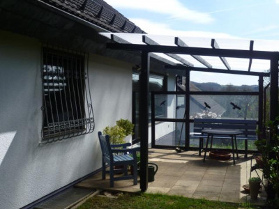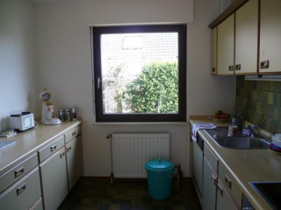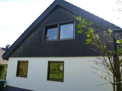 Dieses freistehende Einfamilienhaus, voll unterkellert mit integrierter Garage und schön angelegtem Garten, wurde 1981 als Fertighaus der Firma Schwörer errichtet.Das Haus wurde kürzlich renoviert und ist in einem gepflegten Zustand.Die Wohnfläche im EG beträgt ca. 89 m² und ist wie folgt aufgeteilt:Wohn-/Essbereich mit Ausgang zur überdachten Terrasse, Küche, Flur, Schlafzimmer und Arbeitszimmer.Im ausgebauten Dachgeschoss, ca. 47 m², befinden sich ein großzügiger Wohnraum, ein Schlafzimmer sowie ein Duschbad.Der Keller verfügt außer der Garage über einen Hobbyraum, einen Vorratsraum sowie einen Heizungs-/Waschraum.