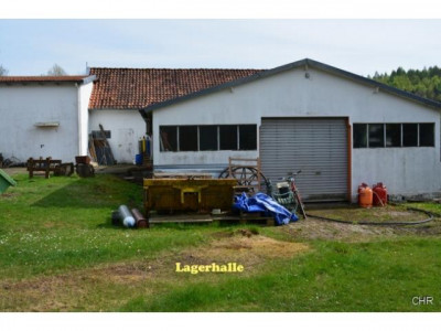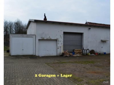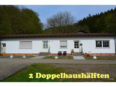 Das ist vielleicht die Immobilie, die Sie schon immer gesucht haben ? In einem freistehenden Einfamilienhaus wohnen, direkt vor der Tür Ihr Hobby das Auto: eine Lagerhalle mit Montagegrube, ein großes Grundstück mit viel Lagemöglichkeiten und für Mieteinnahmen sorgen 2 Doppelhaushälften neueren Baujahrs.Aber nun zur einzelnen Beschreibung:Sie wohnen in einem freistehenden Einfamilienhaus (Fachwerkhaus) mit ca. 150 qm Wohnfläche. Im Erdgeschoss haben Sie ein Wohnzimmer, eine Küche, ein Badezimmer, ein Schlafzimmer und das Treppenhaus ins Obergeschoss. Im Obergeschoss haben Sie ein weiteres Wohnzimmer, eine Küche, ein Abstellraum und ein weiteres Bad. Beheizt wird dies Haus mit einer Ölzentralheizung.Neben dem Einfamilienhaus wurden 2 Doppelhaushälften (Flachbau) in Massivbauweise erbaut. Eine Doppelhaushälfte ca. 60 qm, und die andere Doppelhaushälfte ca. 80 qm, diese ist z.Zt. vermietet.Da diese Doppelhaushälften neueren Datums sind, sind die Fenster Kunstofffenster mit Isolierverglasung und mit Rollläden. Beheizt werden die Häuser mit jeweils getrennter Gasheizung, so dass der Mieter direkt mit dem Versorger seinen Verbrauch abrechnet. Wenn Sie diese beiden Haushälften vermieten, haben Sie schon einmal gute Einnahmen um vielleicht selbst kostenfrei zu wohnen.Sie sind viel beschäftigt mit Autoreperaturen oder ähnliches? So haben wir jetzt das nächste Extra. Auf dem Grundstück befinden sich 2 große Lagerhallen und 2 Garagen. Eine Lagerhalle hat eine Montagegrube.Wenn Sie die Lagerhallen oder Garagen nicht selbst nutzen wollen, können Sie diese ja auch seperat vermieten.Die Lagerhallen sind ausgestattet mit Rolltoren und Holzofen.Auf dem Grundstück befindet sich noch ein großer gepflasterter Parkplatz und auf Grund der Größe des Grundstückes bietet dieses noch diverse Lagermöglichkeiten.Wie Sie aber am Kaufpreis ersehen, sind natürlich noch diverse Modernisierungsmaßnahmen speziell in dem freistehenden Einfamilienhaus erforderlich.Wie in der Überschrift versprochen bietet diese Immobilie viele Nutzungsoptionen und hat eine schöne Lage direkt am Wald, das Grundstück ist eingezäunt und an der Grenze fließt ein kleiner Bach.