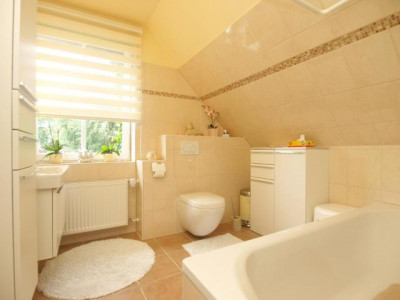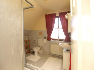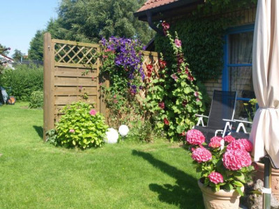 Das Doppelhaus „MÖWE JONATHAN“ besteht aus 4 Wohneinheiten mit eigenen Grundbüchern und ist konzipiert als Komplex mit 4 Eigentums-Ferienwohnungen.Eine Doppelhaus-Hälfte (2 WE) hat der Eigentümer als seine Hauptwohnung zusammengefasst, ein Rückbau in den Urzustand „2 Ferienwohnungen“ ist mit geringem Aufwand möglich.Die andere Hälfte (2 WE) werden als Ferienwohnungen erfolgreich vermietet.Die Außenhaut ist mit Vormauerwerk verklinkert, eine Fassadenbegrünung mit Wildem Wein ist „im Werden“.Das Dach ist ein sogenanntes Krüppelwalmdach, Dachneigung ca. 45°, belegt mit Braas Betonziegeln.Die Fenster sind hochwertige Holz-Sprossenfenster mit CLIMALIT 16 Doppelverglasung.Die Böden sind teilweise mit Naturstein belegt, teilweise gefliest, die übrigen mit Laminat ausgelegt, aber alle sind sogenannte Hartböden, also allergikerfreundlich.Da auch die Ferienwohnungen nur als Nichtraucherwohnungen angeboten werden, ist das gesamte Doppelhaus „rauchfrei“.Die Erdgeschosswohnungen verfügen über neu angelegte großzügige Terrassen, die im Obergeschoss über einen Freisitz.Für Terrassenmöbel, Gartengeräte, Waschmaschine, Fahrräder usw. sind Schuppen am Haus, weiteren Stauraum bietet der Spitzboden.Zu jeder der 4 WE gehört ein PKW-Stellplatz auf dem Grundstück.