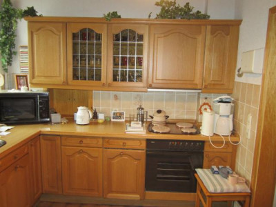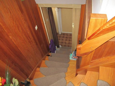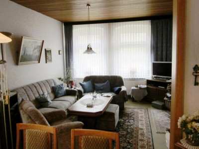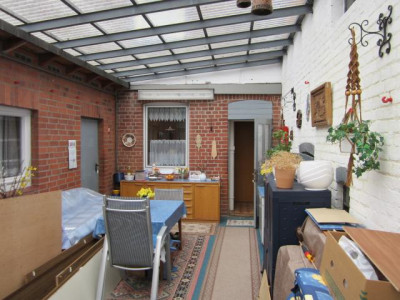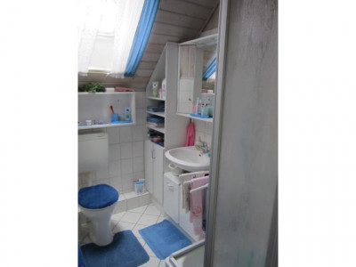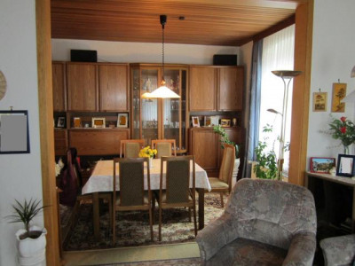 Das 1904 erbaute Haus wurde vom Zweifamilien zum Einfamilienhaus umgebaut. Im 57quadratmeter großen Erdgeschoss befinden sich das helle Wohn- und Esszimmer und ein weiterer Wohnraum. Das geflieste Tageslichtbad, dass mit einer Badewanne ausgestattet ist, erreicht man über die Küche. Von der getäfelten Einbauküche aus gelangt man nach draussen auf die Überdachte Terasse und in den großen Garten. Die Terrasse liegt zwischen einem ehemaligen Stall und der Waschküche in der sich auch die Heizung befindet. Ein weiteres Badezimmer ( Duschbad ), ein Abstellraum und drei schön geschnittene Wohnräume befinden sich im Obergeschoss. Zwei der Wohnräume sind durch eine direkte Tür miteinander verbunden, von dem einen der der beiden Räume hat man Zugang auf den kleinen Balkon in Südlage. Alle Räume in dieser Etage sind über den großen Flur zu erreichen.