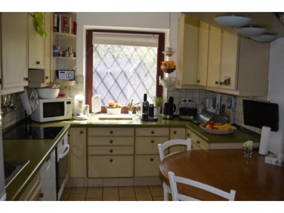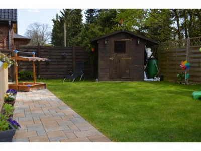 Diese Doppelhaushälfte aus dem Jahre 1982 liegt in einer ruhigen Anliegerstraße in Hamburg Rahlstedt-Oldenfelde. Ca. 110 m² Wohnfläche verteilen sich auf das Erd- und Obergeschoss. Sie betreten den Windfang mit Garderobe. Von hier geht’s ins Gäste WC und in die Wohnküche. Weiter in den geräumigen Flur mit Treppe ins OG und in den Keller. Der Wohnraum und Essbereich ist schön offen gehalten und es wurde hier hochwertiges Stäbchenparkett verlegt. Essbereich mit Blick in den Garten. Das helle und freundliche Wohnzimmer mit großer Fensterfront und Zugang zur Terrasse ist mit elektrischen Rollläden ausgestattet und der offene Kamin bietet hier eine gemütliche Atmosphäre. Über die geräumige Treppe gelangen Sie in das Obergeschoss. Bis auf das Vollbad wurde hier überall Laminat verlegt. Drei Zimmer bieten hier ausreichend Platz für die kleine und große Familie. Eine Raumspartreppe führt auf den großen ausgebauten Dachboden, auch hier wurde Laminat verlegt. Das Haus ist voll unterkellert. Ein Hauswirtschaftsraum, ein Abstellraum, der Heizungsraum und ein großer Hobbyraum mit Außentreppe zum Garten sind vorhanden. Alle Räume sind mit Heizkörpern ausgestattet. Die Heizungsanlage der Firma Viessmann stammt aus dem Jahre 2006.Der wunderschöne, uneinsehbare Garten ist sehr pflegeleicht angelegt und nach Südwesten ausgerichtet. Die Pflasterung wurde im Jahr 2012 erneuert. Hier befindet sich auch ein Gartenhaus und der Außenstellplatz.