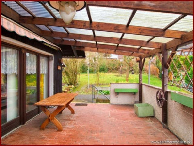 Überraschend viel Platz bietet dieses Wohnhaus, obwohl es nominell nur ca. 100 m² Wohnfläche hat. Der untere Bereich des Hauses (Hauseingang), der offiziell als Keller ausgewiesen ist, ist zusätzlich größtenteils wohnlich ausgebaut und dient als Gast- und Hobbybereich mit großen Tageslichtfenstern und ist selbstverständlich beheizt.Im Haus integriert ist eine sehr große Garage, zusätzlich gibt es ein separates Carport.