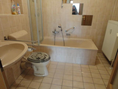Die Wohnung im 1. Obergeschoss ist super aufgeteilt und bietet 2 Zimmer, Küchenbereich inklusive Kücheneinrichtung, Bad, Flur und eine große, sonnige Terrasse. Küche ist vorhanden und verbleibt in der Wohnung. Schöner Parkettboden, einzugsbereit angelegte Wohnräume Waschmaschinenanschluss im Badezimmer, Badewanne.