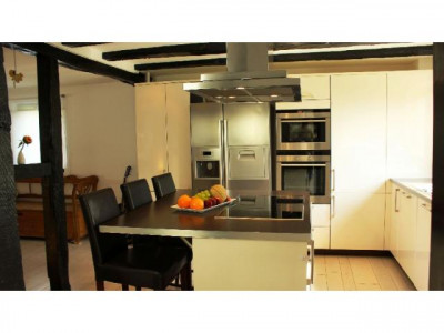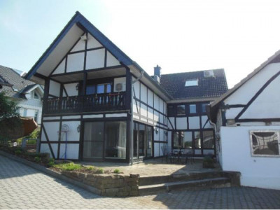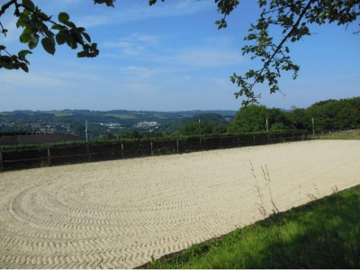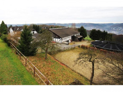 Willkommen zu Hause - Im eigenen Wohndomizil! Ein exklusives Anwesen für Pferdeliebhaber mit der perfekten Mischung aus Modernität und historischem Landhaus!Diese extravagante Immobilie ist ein ländliches Anwesen vom Feinsten und teilt sich in ein Haupthaus mit ca. 275 m² Wfl.und ein Appartment mit einer Wohnfläche von ca. 57 m² auf. Auf dem ca. 38.121 m² großen Grundstück befinden sich zudem eine Reithalle, (ca. 30m x 15m), ein Reitplatz (ca. 50m x 17m), eine Freilaufführanlage, ein komplett gepflasterter Hof mit Pferdewaschplatz, eine Weide sowie 13 Pferdeboxen (4 Boxen mit Zugang vom Haus).Das Hauptaugenmerk im Erdgeschoss des Wohnhauses liegt auf dem offenen Küchen-/, Ess-/ und ein Wohnbereich. Integrierte Fachwerkbalken verleihen dem offenen Raum ein tolles Ambiente zum Wohlfühlen. Im Erdgeschoss wurden helle Fliesen in Stabparkettdesign verlegt. Die Küche in hochglanz-weiß ist sehr hochwertig ausgestattet, eine Kochinsel mit Barhockern runden das moderne Bild ab. Gekonnt wurde im Erdgeschoss modernes Design mit gemütlichem Landhaus kombiniert. Des Weiteren befinden sich ein Büro, ein Hauswirtschaftsraum, 2 Abstellräume, der Flur und die Dielenschleuse zum Stall im EG.Im Obergeschoss finden Sie ein großzügiges Elternschlafzimmer (ca. 46 m²) mit Bad en suite und Ankleide. Die moderne Linie wird im Obergeschoss fortgeführt. Das Badezimmer ist stilsicher mit hellen, großen Fliesen sowie Mosaiksteinchen und gehobenen Armaturen (teilweise von Grohe) ausgestattet. Ein Kinderzimmer und ein weiteres Bad befinden sich zudem im Obergeschoss. Beide Badezimmer wurden 2008 erneuert. Im Obergeschoss bieten zwei weitere Kinderzimmer mit Badezimmer genug Platz. Im Obergeschoss des Wohnhauses können Sie ein Appartment mit separatem Zugang über eine Außentreppe erreichen. Hier sind zwei Zimmer auf ca. 57 m² Wohnfläche verteilt.