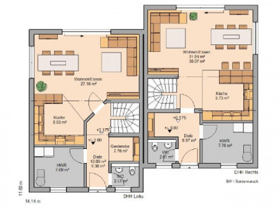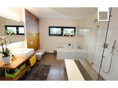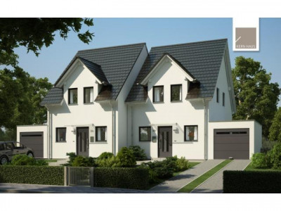 Ihr Traumhaus ist besonders energieeffizient. Das Doppelhaus Twin L von Kern-Haus bietet einige Vorteile: Denn wer sich für eine Doppelhaushälfte entscheidet, sagt JA zu einer preislich attraktiven und eigenständigen Wohnform. Das Haus Twin ist dabei doppelt attraktiv: Zum Einen lässt sich das eigene Traumhaus auf schmalen und kleineren Grundstücken realisieren, zum Anderen bietet es den Bauherren Einsparungen, die beispielsweise in eine Mehrausstattung investiert werden können.Dabei muss man im Grundriss auf nichts verzichten! Das Erdgeschoss betritt man über einen einladenden Flur mit praktischer Garderobennische. Hauswirtschaftsraum und Gäste-WC sind von dort auf kurzem Wege zu erreichen. Wohn- und Essbereich und Küche bieten einen Blick in den eigenen Garten, große Fensterelemente spenden Licht und lassen den Raum noch großzügiger wirken. Das Dachgeschoss bietet mit zwei Kinderzimmern Platz für die ganze Familie. Auch hier versorgen die großen Gauben den Wohnraum mit viel Licht und lässt die Wohnräume immer hell und freundlich erscheinen. Das Badezimmer bietet genügend Raum für ein entspannendes Dusch- und Badeerlebnis. Das Dachgeschoss ist mit zwei großen Gauben ausgestattet, die die Wohnfläche erhöhen und die Wohnräume mit Licht versorgen. Das Dachgeschoss kann auf Wunsch um ein praktisches Home-Office erweitert werden.Dieses Haus wird nach Ihren individuellen Wünschen geplant und ausgestattet!