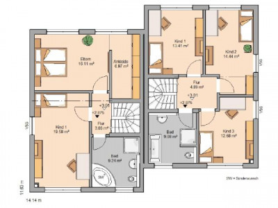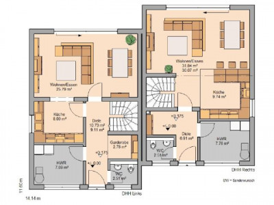 Ein perfektes Zuhause für die ganze Familie: Twin XXL steht für Freiraum und Wohnkomfort auf drei Ebenen - große Fenster verwandeln den Innenraum in ein helles Zuhause. Im Erdgeschoss befinden sich neben Küche und Wohn-Esszimmer auch ein Gäste-WC, der Hauswirtschaftsraum und eine praktische Garderobe. Das Obergeschoss beherbergt entweder ein großes Elternschlafzimmer mit Ankleide und ein Kinderzimmer (Variante links) oder drei Kinderzimmer (Variante rechts). Das Highlight ist ein großes Badezimmer für die ganze Familie. Im Dachgeschoss befinden sich zwei weitere Räume wie z.B. ein Kinderzimmer und ein Studio. Die zweite Variante beinhaltet ein großes Elternschlafzimmer mit Ankleide und ein Studio. Ein zusätzliches Duschbad im Dachgeschoss ist auf Wunsch erhältlich. Die Individualität spiegelt sich auch im Äußeren wider: Wählen Sie zwischen einer klassisch anmutenden oder einer modernen Variante oder entscheiden Sie selbst über Farben und Materialien der Fassade!Dieses Haus wird nach Ihren individuellen Wünschen geplant und ausgestattet!