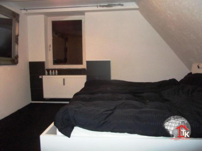 Die schöne DG-Wohnung bietet auf ca. 70 m² sehr viel Platz. Das tolle TGL-Bad lädt mit seiner Eckbadewanne zum relaxen ein und die moderne, nagelneue Einbauküche steht Ihnen zur Verfügung. In den Wänden sind sehr viele Regale eingebaut, die nicht nur Stellplatz bieten, sondern ein richtiger Hingucker sind. Hinter einem großen Schrank versteckt besteht eine Ablagemöglichkeit unter der Dachschräge. Das Schlafzimmer bietet Ihnen einen begehbaren Kleiderschrank. Im Wohnzimmer ist eine kleine "Empore" auf der die Sitzmöbel stehen. Diese ist rundherum mit einer indirekten Beleuchtung versehen. Fernsehen ist über Satellit möglich. Haustiere sind nicht gewünscht.