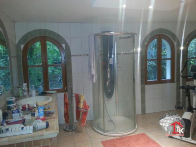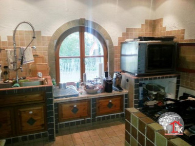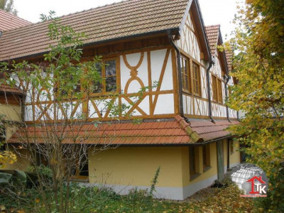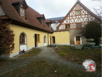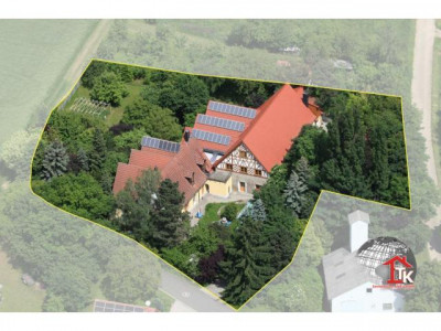 Dieses besondere Anwesen wurde 1998 auf den Grundmauern einer ehemaligen Ziegelei errichtet. Mit viel Liebe zum Detail ist auf ca. 3100 m² Grund eine einzigartige Immobilie entstanden. Das Sichtmauerwerk, Fachwerkteile, Holz, Glas und die Kombination mit modernster Technik bieten Ihnen den besonderen Wohnkomfort.Das Gelände umfasst zwei Gebäude: Das Wohnhaus mit ca. 340 m² Wohnfläche und ein zweites Gebäude mit ca. 520 m² Nutzfläche. Das Anwesen wurde rein aus Naturmaterialien errichtet. Die Außenwände bestehen aus zwei Holzwänden, Papierdämmung und Zementfaserplatten mit Wärmeputz. Eine ständige Durchlüftung der Zementfaserplatten sorgt für ein angenehmes Raumklima. Somit ist es kühl im Sommer und warm im Winter.Eine Photovoltaikanlage mit 5 KW ist vorhanden. Beheizt wird das Anwesen mit einer modernen Gas-Heizanlage und Fußbodenheizung, auch in einigen Bereichen des Gewerbeteils.Im Erdgeschoss des Haupthauses befinden sich das Wohn- und Esszimmer mit Kaminofen, die Wohnküche, Badezimmer, Speisekammer, das Gäste-WC, ein Heiz- und Waschraum und ein weiterer Raum ohne festgelegte Nutzung. Die gemauerte Küche ist mit Profiküchengeräten ausgestattet. Im neuen exklusiven Bad werden Ihnen auf über 40 m² Fläche nicht nur eine Toilette, Waschbecken und Duschkabine, sondern auch ein großzügiger Whirlpool mit beheizter Rundumsitzfläche geboten. Im Obergeschoss sind drei Schlafräume sowie ein weiteres Bad mit Dusche und Wanne zu finden. Ein Highlight dieser Immobilie ist sicherlich der große Partyraum, der mit einem Backhäuschen zum Selberbacken einlädt.Zur Unterbringung von Fahrzeugen finden Sie auf dem Grundstück eine Einzelgarage und zwei große Carports. Der weitläufige grüne Garten wird teilweise durch eine Mauer und einen romantisch angehauchten Eisenzaun begrenzt. Da diese Immobilie noch zahlreiche weitere Details zu bieten hat, empfehle ich Ihnen, sich selbst bei einer Besichtigung einen Eindruck über die vielfältigen Nutzungsmöglichkeiten dieser Immobilie zu machen.
