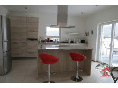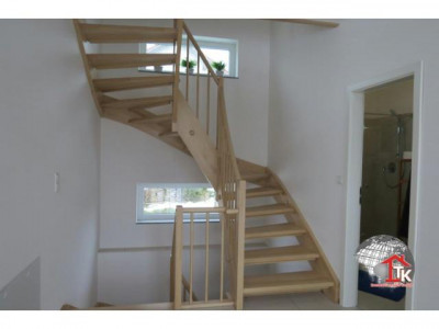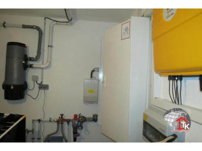 Dieses Haus wurde in ökologischer Bauweise und mit höchstem technischen Standard erstellt !Das EG ist aufgeteilt in einen lichtdurchfluteten, hellen Wohn- und Essbereich mit edler offener Einbauküche mit Kochinsel. Die Bibliothek im Wohnbereich mit seinen raumhohen Bücherregalen wird Ihr Lieblingsplatz zum Relaxen sein. Der Luftraum hin zur Galerie sorgt für ein edles Ambiente. Angrenzend befindet sich ein Vorratsraum. Ein gepflegtes, schickes Gäste-WC mit Dusche rundet den Wohnbereich im EG ab. Im Sommer können Sie einen genüsslichen Cappuchino auf der großen Südterrasse genießen.Über eine extra breite Massivholztreppe aus Hainbuche mit eingebauten LED's gelangen Sie in OG des Hauses. Schon die elegante Galerie setzt diesen Wohnbereich gekonnt in Scene. Auf dieser Ebene stehen Ihnen neben einem Schlafzimmer, ein Kinderzimmer sowie ein elegantes Badezimmer mit extra großer Wanne und begehbarer Regendusche zur Verfügung. Für die Badausstattung wurde Villeroy & Boch ausgewählt.Im KG steht Ihnen ein Heimkinoraum mit Akustikputz und kompletter Audio/Viedeoverkabelung und ein Büroraum zur Verfügung. Ferner befindet sich der Heizraum mit Wärmepumpenanlage und integrierter Lüftungsanlage mit Wärmetauscher, ein zusätzlicher Kelleraum und der Zugang zur Garage auf dieser Ebene.Dieses Haus wurde nach höchstem ökologischen und technischen Standard erbaut und ist für Allergiker geeignet !!