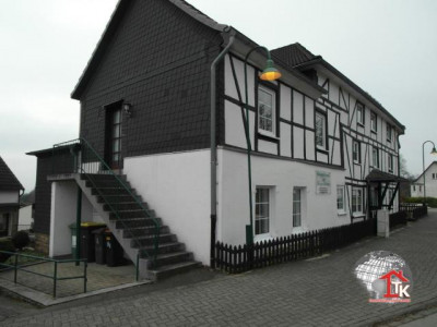 Sehr gut erhaltenes Fachwerkhaus (Altbau 1903 sowie Anbau 1935), aktuell genutzt als Gemeindesaal mit zwei Wohneinheiten. Aufgrund der vorhandenen Infrastruktur, kann man dieses Objekt so optimal wieder nutzen. Dieses Objekt lässt sich hervorragend auch als Wohn-/Geschäftshaus (Büro, Praxis o.ä. im Erdgeschoss) verwenden. Die zwei vorhandenen Wohneinheiten lassen sich gut vermieten. Der riesengroße Dachboden hat wunderbares Ausbaupotenzial für eine weitere schöne Loftwohnung. Natürlich kann mit durchdachten Umbaumaßnahmen auch im Erdgeschoss eine geräumige Wohneinheit errichtet werden. Gerade in dieser schönen ländlichen Wohngegend wird man mit Ruhe und Wandermöglichkeiten verwöhnt. Am Objekt wurden kontinuierlich Modernisierungen durchgeführt, so wurde unter anderem im Jahr 2000 die Gas-Zentralheizung mit getrennten Heizungskreisläufen erneuert, der Elektrokasten wurde 2013 erneuert sowie die Tageslichtbäder der beiden Wohneinheiten wurden in 2004/05 saniert. Der Primärenergieverbrauch dieses Gebäudes beträgt 261,2 kWh/(m² a).Erdgeschoss (ca. 220 m²):Der Vorraum/Foyer lädt herzlich mit 34 m² ein. Ein Garderobenraum zur Rechten ist 16 m² groß. Der Hauptsaal bietet Sitzplätze für min. 95 Personen, insgesamt ist der Hauptsaal mit Bühne 114 m² groß. Ein weiterer Besprechungsraum ist mit 19 m² vorhanden. Die separaten Herren und Damen Toiletten sind über das Foyer zugänglich. Zwei weitere Büroräume (nicht in den 220 m² enthalten) sind im Obergeschoss vorhanden. WE1 (ca. 92 m²), 2,5 ZKB im OG:Flur (10,50m²), Wohnzimmer (28m²), Schlafzimmer (20m²), Büro (11m²), Tageslichtbad (6,50m²) mit Badewanne sowieeiner Küche (16m²). Zugänglich vom Wohnzimmer aus, kann ein großer Balkon errichtet werden. WE2 (ca. 65 m²), 3 ZKB im OG:Schlafzimmer (14m²), Büro (10,50m²), Flur (6m²), Tageslichtbad (4,50m²) mit Dusche, Küche (10m²) sowie Wohn-Esszimmer (20m²). Zum Objekt gehören 11 Parkplätze direkt am Haus.Gerne senden wir Ihnen weitere Unterlagen und erstellen Ihnen ein Finanzierungsangebot.