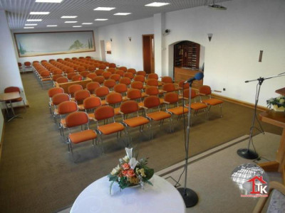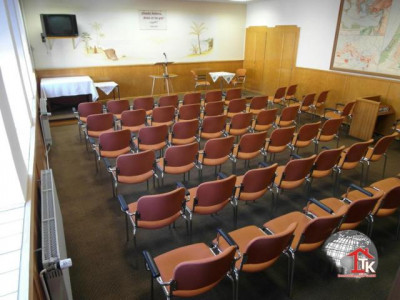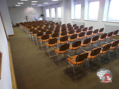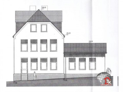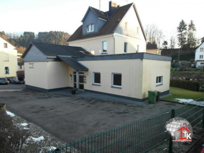 Historisches Gebäude mit 442,80 Nutzfläche auf 1081 m² Grundstückfläche, hiesige Schule (Baujahr ca. 1900). 1968 wurde durch umfangreiche Um- und Anbauarbeiten diese Schule zu einem Schulungs- und Gemeindesaal umfunktioniert, im Dachgeschoss befindet sich des Weiteren noch eine Wohneinheit. Aufgrund der vorhandenen Infrastruktur, kann man dieses Objekt so optimal wieder nutzen. Dieses gepflegte Gebäude lässt sich durch Integration von modernem Design hervorragend vielseitig einsetzen, z. B. als Büro, Praxis, Anwaltskanzlei o. Ä.. Hinter dem Haus ist ein schöner Gartenbereich an einem kleinen Bachlauf. Am Objekt wurden kontinuierlich Modernisierungen durchgeführt, unter anderem wurde im Jahr 2006 über dem Anbau ein neuer Dachstuhl, eine Eingangsüberdachung sowie eine Notfall-Außentreppe vom Hauptsaal ausgehend errichtet. Außerdem wurde die Gas-Zentralheizung mit getrennten Heizungskreisläufen erneuert. Der Primärenergieverbrauch dieses Gebäudes beträgt 185,7 kWh/(m² a). Erdgeschoss (197,70 m²):Der Windfang und Vorflur begrüßt mit 26 m². Zur Rechten gelangt man zu den separaten Herren und Damen Toiletten (insgesamt 26 m²). Die Garderobe und ein kleiner Abstellraum sind im Foyer (24 m²) untergebracht. Der Hauptsaal ist einschließlich Bühne 118 m² groß und bietet Sitzplätze für min. 100 Personen. Obergeschoss (81,70 m²):Über einen Vorraum (12 m²) gelangt man in einen Schulungsraum (57 m²). WE1 (Wohnfläche ca. 61 m²) im DG - 3 ZKB:Schlafzimmer (11 m²), Büro (11 m²), Flur (9 m²), Bad+WC (4 m²), Essküche (13 m²) sowie Wohnzimmer (13 m²). Zum Objekt gehören 20 gepflasterte Parkplätze direkt auf dem eingezäunten Grundstück.Gerne senden wir Ihnen weitere Unterlagen und erstellen Ihnen ein Finanzierungsangebot.