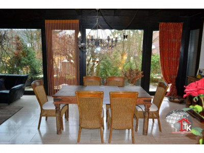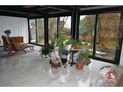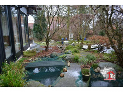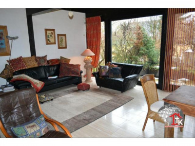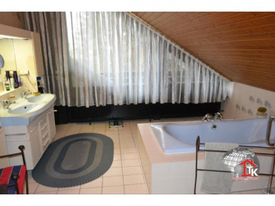 Großzügig geplant und stilvoll umgesetzt, kann man hier Wohnen und Arbeiten unter einem Dach hervorragend verbinden. Zum Verkauf steht ein Haupthaus welches in Fachwerkbauweise errichtet wurde. Diese nie aus der Mode gekommene traditionelle Bauweise wird bis in die heutige Zeit hinein erfolgreich weitergeführt. Das moderne Fachwerk erfüllt höchste Qualitätsansprüche. Aufgrund der selbsttragenden Fachwerkkonstruktion konnte eine individuelle Raumgestaltung umgesetzt werden.Im massiv errichteten Zweithaus mit Zwischenbau und Garagen sind weitere Wohnräume und eine großzügige Arztpraxis mit 9 Räumen angelegt. Ob Arbeiten oder Wohnen - diese Räume können vielfältig genutzt werden. Vor dem Gebäude gibt es 4 Stellplätze.Das Haupthaus ist unterkellert, es geht ein Verbindungsbau zur Praxis. Im Verbindungsbau gibt es einen Wellnessbereich mit Schwimmbecken und Duschbereich. Das Schwimmbecken mit Gegenstromanlage ist zur Zeit stillgelegt kann aber jederzeit wieder in Betrieb genommen werden. Die Heizung wurde ab 2004 immer wieder renoviert (2004 kam der Kessel, in späteren Jahren wurden die beiden Module und der Safe Zug um Zug ausgetauscht, 2010 wurden die Verteiler ausgetauscht und Energieeffizienzpumpen eingebaut)Ein Traum für alle Gartenliebhaber ist der aufwendig angelegte Naturgarten mit Teich, künstlichen Bachlauf und natursteinbelegtem Grillplatz mit Cheminèe. Viele Bäume und Sträucher machen diesen Garten zu einem wahren Idyll und bieten einen guten Sichtschutz. Seit November 2010 gibt es eine Photovoltaikanlage, die Anlage ist im Preis noch nicht enthalten.Wir haben Ihr Interesse geweckt? Gerne können wir Ihnen bei einem persönlichen Gespräch oder einen Besichtigungstermin weitere Details und Vorzüge dieser hervorragenden Immobilie präsentieren.