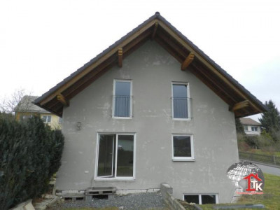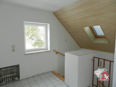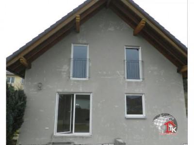 Auf einem 691 m2 großem Areal wurde 2001 das moderne Einfamiliehaus in Massivbauweise errichtet. Das Haus besteht aus Untergeschoß, Erdgeschoß, Obergeschoß und Dachboden. Über einen kleinen Weg erreicht man den Eingang des Hauses; hier kommt man über den Windfang in die Wohnung und zum Untergeschoß.Das Untergeschoß: über eine schöne Treppe mit Holz belegt erreicht man das Kellergeschoß, hier befindet sich ein großer Partyraum mit Tageslichtfenstern, ein kleiner Kellerraum , der Heizungs- und Anschlußraum, die Waschküche und ein Abstellraum.Das Erdgeschoß: Über die großzügige Diele erreicht man alle Räume und den Aufgang zum Obergeschoß, Im Erdgeschoß sind ein Arbeitszimmer, die Küche, das Gäste WC und das große , gemütliche Wohnzimmer mit Panoramaausgang in den Garten. Besonders hervorzuheben ist der super , schöne Kachelofen mit kleiner Ofenbank; hier kann man sich richtig wohl fühlen.Das Obergeschoß: Hier befinden sich das Bad mit Badewanne, Dusche, Waschbecken und WC (natürlich ist im Bad ein großes Fenster), das Schlafzimmer , das Kinderzimmer 1 und das Kinderzimmer 2.Über eine Auszugstreppe erreicht man den Dachboden; für Abstellzwecke sehr gut geeignet.Am Einfamilienhaus fehlt noch der zweite Putz, die Stufe zum Haupteingang und die Terasse.