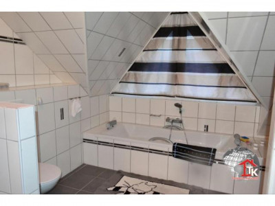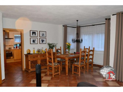 Top gepflegtes, neuwertiges EFH in zauberhafter Lage von Diespeck Ortsteil. Das Haus ist ideal für alle, die zentral wohnen möchten und dennoch die Ruhe und das Landleben lieben. Das Haus steht idyllisch etwas erhöht von einem Bach. Von diesem Gewässer hätten Sie ein Wasserentnahmerecht. Mit dieser Wasserentnahme können Sie eine eigene Zisterne befüllen und für die Gartenbewässerung nutzen.Das voll unterkellerte Haus wurde 2008 von der Firma "Massa" in Ständerbauweise errichtet. Der Keller wurde mit wasserdichtem Beton erbaut und ist somit absolut trocken. Der Garten ist teilweise angelegt. Eine Terrasse mit Aussengrill und einem Bachlauf integrieren sich schön in das Gelände170m² Wohnfläche verteilen sich wie folgt:- Erdgeschoss: Wohn und Eszimmer mit Kamin und Zugang zur Terrasse, Küche mit Einbauküche, Arbeitszimmer, Badezimmer mit Eckbadewanne und Waschmaschinenanschluss, Treppenhaus- Obergeschoss: Elternschlafzimmer mit Zugang zum Balkon, zwei Kinderzimmer mit französischem Balkon, Familienbad mit Badewanne, Wellnessdusche und Zugang zum Balkon- Untergeschoss: großes Arbeitszimmer, Heizraum, Technikraum, Kellerraum