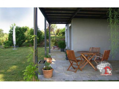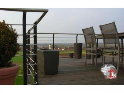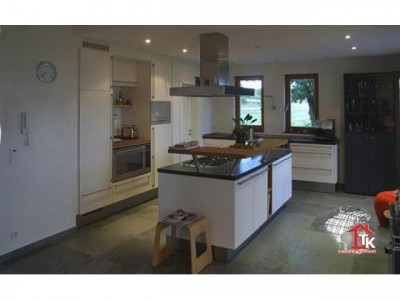 Nicht alltägliche Architektur kombiniert mit modernster Haustechnik und klarer Offenheit - so präsentiert sich dieses Traumhaus in Muhr am See.Das Haus empfängt den Besucher mit moderner Klarheit und Offenheit. Nach Betreten des Hauses über die Haustür kann man den Blick über den offenen Wohn- und Essbereich bis nach draußen mit einem phantastischen Weitblick über die Natur und den See schweifen lassen. Mehr Freiheit geht kaum!Seinen Bewohnern bietet das Haus viel Platz zum Leben. In der geräumigen Küche und der Wohnlandschaft die großzügig gestaltet ist, lassen bodentiefe Fenster und Türen viel Licht und Sonne ins Haus. Vom Balkon haben Sie einen Blick über die Landschaft und den Altmühlsee der seinesgleichen sucht. Dieser Blick ist unverbaubar und bleibt Ihnen dauerhaft erhalten. Ein Gäste-WC und ein großer Abstellraum mit Wasseranschluß runden das Erdgeschoss ab.Über eine Treppe gelangen Sie ins Obergeschoss. Die Stufen sind mit Eiche-Massivholz eingepasst, Wandeinbaustrahler beleuchten die gesamte Treppe.Im Obergeschoss erwarten Sie ein großes Kinderzimmer, ein Arbeitszimmer, die geräumige Diele mit Zugang zum oberen Balkon, das Elternschlafzimmer mit Ankleidezimmer und das traumhafte, nicht alltägliche Badezimmer. Ausgestattet ist dieser Raum mit einer großen eben begehbaren Dusche, einer Badewanne, Waschbecken und einem WC. Ein Tageslichtfenster und ein Oberlicht sorgen für viel Licht im Raum.Das Untergeschoss kann über eine innenliegende Treppe oder einen eigenen Hauseingang betreten werden. Hier ist eine komplette Einliegerwohnung mit Schlafzimmer, Wohn- und Esszimmer, Kochnische mit Einbauküche sowie eine Terrasse mit Zugang zum Garten angelegt. Ein großer Raum mit integrierter Dusche und WC bietet sich idealerweise als Wellness- oder Fitnessraum an. Auch dieser Raum hat eine große, zum Teil überdachte Terrasse und Zugang zum Garten. Ein kleiner Elektroraum und der große Technikraum runden diese Etage ab.Das große Garagenhaus ist zweigeschossig