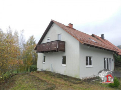 Das Einfamilienhaus in Bad Berneck wurde 2001 als modernes Streif- Fertighaus erbaut. Es besteht aus Untergeschoß, Erdgeschoß, Obergeschoß und Dachboden.Über die gepflasterte Einfahrt erreicht man den Eingang des Hauses im Untergeschoß. Hier befinden sich die Diele, ein großer Kellerraum und der Anschluß - und Abstellraum. Über eine kleine Treppe erreicht man die Diele des Erdgeschoßes. Von der Diele aus kommt man in alle Räume im Erdgeschoß. Hier befinden sich die Küche, das Wohnzimmer mit Panoramatüre in den Garten , das Arbeits - oder Gästezimmer und das Bad.Das Obergeschoß erreicht man über eine moderne Treppe, hier sind das KInderzimmer 1, das Kinderzimmer 2 , das Kinderzimmer 3, ein Schlafzimmer mit Zugang zum Balkon, ein Bad und ein Abstellraum. Das Dachgeschoß ist für Abstellzwecke über eine Auszugsleiter sehr gut geeignet.