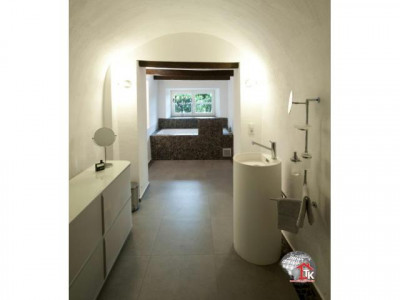 Das Ursprüngliche Haus ist ca 150 Jahre alt. Das heisst ein Teil Besteht aus alten Natursteinmauern von einer Wandstärke 80 -100 cm, mit teilweise Gewölbedecken, alles total restauriert und gut erhalten. Der Andere Teil dieses wunderbaren Landhauses wurde in den 70 er Jahren angebaut, mit Porotonziegeln 36 cm. Das Haus wurde vom Eigentümer kernsaniert und umgebaut mit Vollwärmeschutzsystem. Alle Elekto und Wasserleitungen wurden erneuert. Beheizt wird dieses schöne Haus mit einer Öl-Zentralheizung, in den Zimmern wurden hochwertige Designheizkörper von Vogel + Noot eingebaut. Der Bodenbelag der Küche ist ausVollholzdielen. Treppe mit Naturstein und die Bäder mit hochwertigen Fliesen gefliest. Ausserdem sind am Haus 2 Balkone und 3 Terrassen. Der gepflegte und romantische Garten verfügt über alte Obstbäume, Rosen, Buxbaumhecken usw. Eigener Parkplatz für 5-6 Pkw`s vorhanden.100qm Nebenfläche, u. a. 1 Massivholzhaus z.B. für Sauna/ Wellness, mit Heizung, Thermopane Fenster, Massivholzboden, Starkstromanschluss.Separates Holzhaus für Gartengeräte etc.