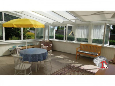 Die Doppelhaushälfe wurde 1963 errichtet und verfügt im Erdgeschoss über zwei Zimmer mit Küche, einem TGL-Bad, WC und einem grossen Wintergarten ca 45qm an der Südseite des Hauses. Im Obergeschoss findet man zwei weitere Zimmer mit einer Küche Bad, WC und einem Balkon. Zum Haus gehört auch eine Garage mit Abstellraum. Auf dem Grundstück befindet sich ein grosser Gartengeräteschuppen und ein Holzschuppen.Das Haus ist einschliesslich des Wintergartens voll unterkellert, auch ein Bad WC und Aussentreppe sind vorhanden.Die Beheizung des Hauses erfolgt über Einzel-Ölöfen mit zentraler Ölversorgung. Im Keller befinden sich 4x 1000l Öltanks. Der Gesamtzustand des Hauses entspricht dem Baujahr, es befindet sich aber in einem ordentlichen Zustand.