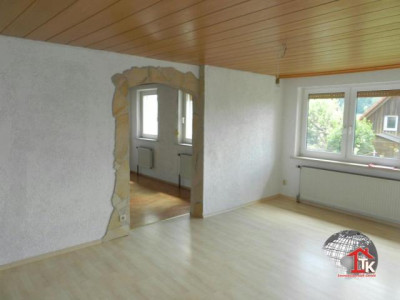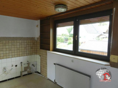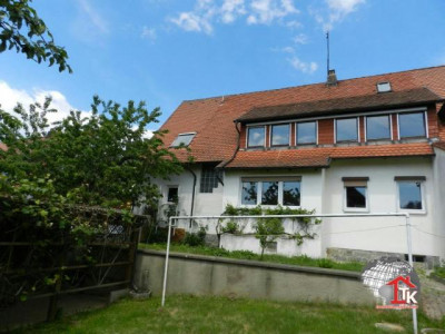Auf einem Areal von ca. 600 m2 wurde in den Sechziger Jahren diese Doppelhaushälfte gebaut, es wurde in den Achtziger Jahren erweitert und umgebaut. Über dem überdachten Eingang mit einigen Abstellmöglichkeiten kommt man in das Ein - bis Zweifamilienhaus. Hier befindet sich die Diele von da aus gelangt man in die Erdgeschoßwohnung , in den Keller und zum Obergeschoß. Das Kellergeschoß: hier befinden sich der Anschlußraum, der Heizraum, ein Kellerraum, der Öllagerraum und noch ein zweiter Kellerraum für Abstellzwecke.Die Erdgeschoßwohnung: über eine kleine Diele erreicht man das Bad mit Dusche, Waschbecken und WC, das Wohnzimmer, die Küche, das Esszimmer und das Schlafzimmer.Die Obergeschoßwohnung: Über eine geschlossene Vollholztreppe kommt man zum Obergeschoß; hier erreicht man ebenfalls über eine kleine Diele das Kinderzimmer 1, das Kinderzimmer 2, das Bad mit Badewanne, WC und Waschbecken, das Wohnzimmer, die Küche, das Esszimmer und das Schlafzimmer. Im Wohnzimmer befindet sich die Treppe zum Dachgeschoß; hier sind noch ein ausgebautes Zimmer und ein teil ausgebautes Zimmer. Zum Anwesen gehört noch ein schöner Garten dazu, u.a. ist hier noch ein überdachter Freisitz mit Grill und ein großer Schuppen. Weiterhin gehören zum Anwesen noch eine Doppelgarage, eine Einzelgarage und ein Carport, ebenfalls Übergröße.