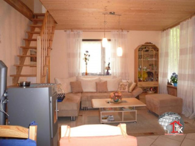 Dieses Ferienhaus liegt direkt am Neubäuer See umgeben von Bäumen und ist ideal für Familien mit Kindern geeignet. Das Objekt ist mit 4 Zimmern ausgestattet, davon sind 3 Schlafzimmer und 1 großes Wohnzimmer mit Essbereich. Im Wohnzimmer befindet sich noch 1 Kaminofen der für gemütliche Wärme sorgt. Gegenüber dem Wohn-/Essbereich ist eine Einbauküche die auch Bestandteil dieses Bungalows ist. Das Badezimmer ist mit einer Dusche, WC und einem Waschbecken ausgestattet. Das Obergeschoss erreicht man im Wohnzimmer über eine offene massive Holztreppe wo sich 1 großes Schlafzimmer befindet. Dieser Ferienbungalow ist als Erstwohnsitz ganzjährig nutzbar.