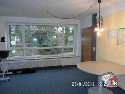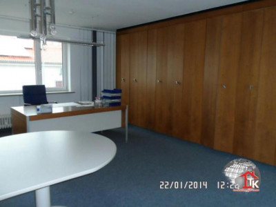 Die Räumlichkeiten befinden sich in zentraler Lage und verteilen sich wie folgt:Großraumbüro ca. 50 m², auf Wunsch teilbar in 2-3 Räume. Eine doppelseitige deckenhohe Schrankwand als Raumteiler (derzeit nicht aufgebaut), sowie Schreibtische und Stühle, können auf Wunsch zur Verfügung gestellt werden.Chefbüro ca. 30 m², mit Blick ins Grüne, hochwertige Ausstattung, festintegrierte, deckenhohe Schrankwand. Individuell kombinierbare, dazu passende Schreibtische, sowie ein Chefsessel und Stühle können auf Wunsch zur Verfügung gestellt werden.Großzügiger, offener Eingangsbereich, der auf Wunsch als Empfangsraum oder Warteraum umgestaltet werden kann.WC ist im Erdgeschoss vorhanden..Diese Räumlichkeiten stehen ab 01.08.2014 zur Verfügung. (nach Absprache eventuell auch früher).Im Erdgeschoss befindet sich ein Versicherungsmakler.Parkplätze stehen zur Verfügung.Der Mieter hat die Möglichkeit diese komplett oder teilweise dem jeweils anderen Mieter - bei Bedarf - unterzuvermieten. Die zu erwarteten Kosten varriieren je nach Winterdienst undGrünanlagenpflege und können beim Vermieter erfragt werden.Die Preisangaben verstehen sich zuzüglich der gesetzlichen MwSt.Alle Angaben stammen vom Eigentümer und wurden nach bestem Wissen gemacht. Irrtümer vorbehalten.Bitte hinterlassen Sie bei Anfragen immer Ihre Telefonnummer.