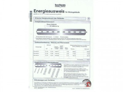 Dieses Objekt wurde zwar schon 1997 fertiggestellt, die Wohnung selbst jedoch noch nicht bezogen. Im Obergeschoß eines Mehrfamilienhauses gelegen, verfügt sie über einen Südbalkon und eine geräumige, den ganzen Tag helle, Dachterrasse, pflegeleichte Böden (Fliesen und Laminat), Kunststoff-Fenster mit Rollos, Wanneninnenbad, Vollwärmeschutz (Energiekennziffer 75 kW/h / qm / Jahr), Kabel-BW, Kellerabteil und Tiefgaragen-Stellplatz (für Euro 10.000.-). Direkt nebenan steht ein 1-Zimmer-Appartement mit Balkon, Duschinnenbad, Kellerabteil und TG-Platz zur Verfügung, das mit geringem Aufwand zur 4-Zimmer-Wohnung ergänzen könnte.