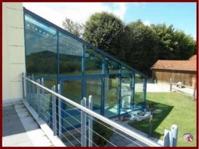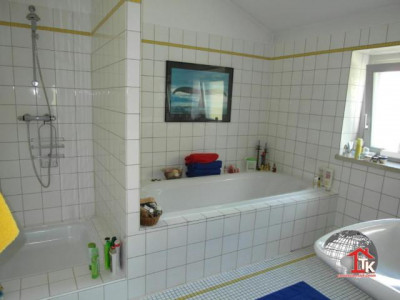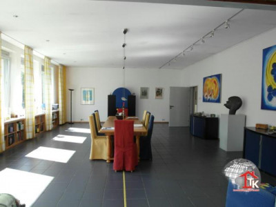 Sie suchen Ihre Traumimmobilie und wollen mal anders wohnen als andere ? Hier wurde ein ehemaliges Schulhaus in ein traumhaftes Loft umgebaut !! Hier steht Ihnen eine Wohnfläche von ca. 600 qm mit großzügiger Raumaufteilung zur Verfügung. Durch eine imposante Eingangshalle mit Zugang zur schicken Terrasse gelangen Sie über eine edle Treppe in den großzügig offenen Flur. Für den angrenzenden Wohn- und Essbereich mit offenem Kamin wurden zwei Räume zusammengefügt und bilden aufgrund Ihrer Raumhöhe und breiten Fensterfronten einen imposanten Wohnraum. Von hier gelangen Sie zur großen sonnigen Terrasse die Sie über eine Treppe in den Garten führt. Vom Wohnbereich gelangen Sie in die angrenzende offene geschmackvoll eingerichtete Küche die Sie begeistern wird. Ein Schlafzimmer, zwei Bäder, Sauna und Ruheraum befinden sich ebenfalls auf dieser Etage. Von hier gelangen Sie auch über eine geschmackvolle Treppe zum Innenpool mit Gegenstromanlage. Hier haben Sie nicht nur einen Pool sondern eine traumhafte Wellnessoase wo Sie nach ein paar Runden herrlich entspannen können. Edle raumhohe Verglasung gibt diesem Bereich einen absolut edlen Touch. Über die großzügige Innentreppe gelangen Sie ins komplett ausgebaute UG. Hier befindet sich ein großzügiger Bürobereich, ein großes Schlafzimmer, ein Gästezimmer. Beide Räume sind mit jeweils angrenzenden Bädern mit Dusche und WC ausgestattet. Ferner befinden sich in diesem Wohnbereich ein Fittnessraum, ein begehbarer Schrankraum sowie die Heizungsanlage. Die Heizungsanlage wurde 2009 komplett erneuert und es wurde ein zusätzliches Blockheizkraftwerk zum produzieren von Wärme für Heizung und Wasser, sowie zur Einspeisung von Elektrizität ins Netz eingebaut. Eine zusätzliche Photovoltaikanlage sichert Einnahmen bis 2029. Der gesamte Wohnbereich ist mit Fußbodenheizung ausgestattet. Im Aussenbreich stehen Ihnen Garagen, eine Werkstatt, kleine Stallungen, Hobbyraum, div. Nebengebäude zur Verfügung. Das 11.000 qm große beleuchtete, parkähnliche Grundstück mit Gartenteich eignet sich ideal zur Tierhaltung. Eine angrenzende Weidefläche kann nach VB dazugepachtet werden.