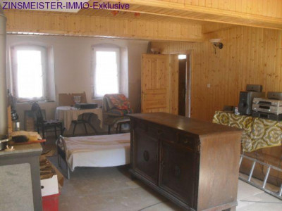Teilweise reonoviertes Wohnhaus mit ehemaliger Gaststätte bzw Tanzsaal. Es befindet sich im ersten Stock Küche, Wohnzimmer ein Zimmer, und noch ein nicht fertiggstelltes Bad. Im zweiten Stock befinden sich 2 Zimmer die sich im Ausbau befinden. Oberer und unterer Stock jeweils 70 qm.Das Nebengebäude ist ein ehemaliges Cafe (Gaststätte) mit Tanzsaal, teilweise schon vorbereitet für eine Wohnung (qm 150). Es gibt insgesamt 6 Kellerräume. Davon 2 Gewölbekeller und ein ehemalges Backhaus.