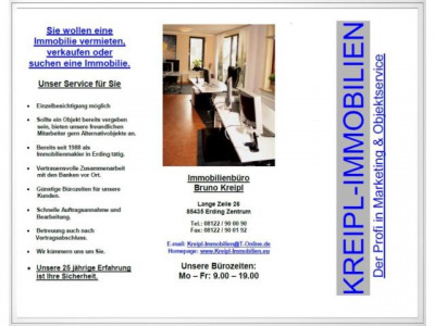 Erding-Klettham - eine ca. 64 m² große 3 Zimmerwohnung mit großem Balkon. TOP: schöne gepflegte AnlageTOP: sonniger großer BalkonTOP: kurzer Weg in die Stadtmitte oder zum S-Bahnhof (S2)Im geräumigen und hellen Wohnzimmer das mit Parkettboden ausgestattet ist hat man sehr viel Platz für einen gemütlichen Wohnraum. Der große sonnige Balkon, der auch über den Wohnraum erreichbar ist, bietet genug Platz für Stühle und einen Tisch. Schlafzimmer und Kinderzimmer haben eine schöne Größe und sind sehr hell, in den Zimmern sind helle Böden verlegt. In der Küche ist ein Fenster, und die Küche ist ohne Einbauküche. Das hell geflieste Badezimmer ist mit einer Badewanne und einem Waschmaschinenanschluss ausgestattet, das WC ist separat.Im Keller des Hauses ist für diese Wohnung noch ein extra Kellerabteil und ein Fahrradkeller, der gemeinschaftlich genutzt wird.Das Haus bekam am 26.09.2012 eine neue Gasheizung, inkl. Solarkollektoren für Warmwasserbereitung und Heizungsunterstützung.