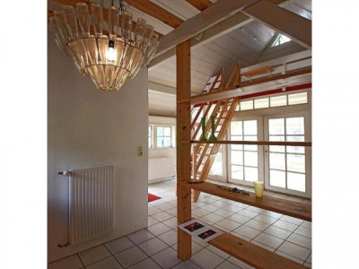 wohlige Wärme im ganzen Raum. Optisch geteilt wirken Esszimmer und Wohnzimmer durch einen Teil offenen Fachwerks. Auch als Speise- oder Gemeinschaftsraum im Rahmen Ihrer Seminare hervorragend geeignet.
