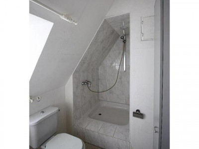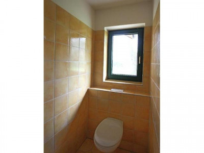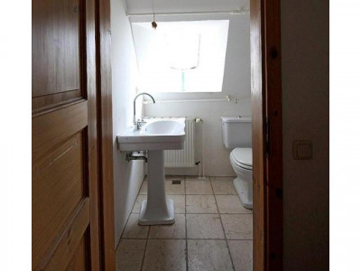 Eine wunderschöne Holztreppe führt sie nun hinauf in den oberen Teil des Hauses, zunächst, in das romantische Schlafzimmer mit Gartenblick und Dielenfußboden. Ein paar Stufen weiter erreichen Sie über einen kleinen Flur das zweite Badezimmer des Hauses, ebenfalls mit Außenfenster. Das lichtdurchflutete, hell geflieste Duschbad bietet gute Ausweichmöglichkeiten auch in einem Mehrpersonenhaushalt, ob als Familie oder als Seminarhaus.