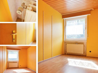 Das helle Reihenendhaus wurde 1978 mit einem Flachdach erbaut. Im Kellergeschoss befinden sich eine Waschküche, der Heizungsraum und ein Abstellraum. Im Erdgeschoss befinden sich eine offene Küche mit angrenzendem Esszimmer und ein Gäste-WC. Über eine kleine Treppe gelangt man in das großzügige Wohnzimmer mit gepflegtem Kaminofen und Zugang zur Terrasse. Im Obergeschoss befinden sich ein großes Schlafzimmer sowie ein Tageslichtbad mit Badewanne und Dusche. Im zweiten Teil des Obergeschosses gibt es zwei Schlafzimmer und ein weiteres Badezimmer mit Dusche und Tageslicht. Die große Terrasse lädt bei schönem Wetter zum Entspannen ein. Über eine Treppe gelangt man in den weiteren Gartenbereich, von dort aus führt eine weitere Treppe hoch zu einem Gemeinschaftsgrundstück. Eine Garage sowie ein Stellplatz stehen vor dem Haus für Sie zur Verfügung.